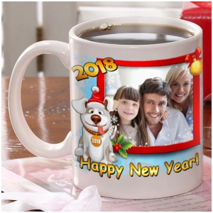 - кружку со своей или вашей совместной фотографией, надписью «Наш первый Новый год», с именным календариком, или даже в «костюме Деда Мороза»;
