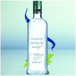 - бутылку крепкого праздничного напитка с гравировкой, в оригинальном мешочке-упаковке с вышивкой поздравления или символом наступающего года;